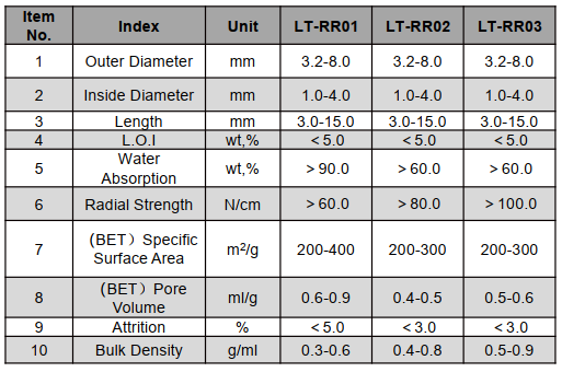 The LT-RR type product is usedasa covering proppant and adsorbentmaterial for the catalyst in thereactor. Its main function is toincrease the gas or liquid distribution points and support and protect low-intensity active catalyst. It has the characteristics of high purity, stable chemical properties, better heat resistance and mechanical shock resistance.It is widely used in petrochemical,natural gas, coal chemical industries and other industries.
