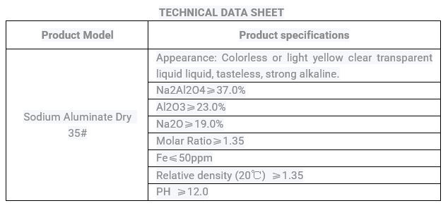 Sodium aluminate solutions specs: